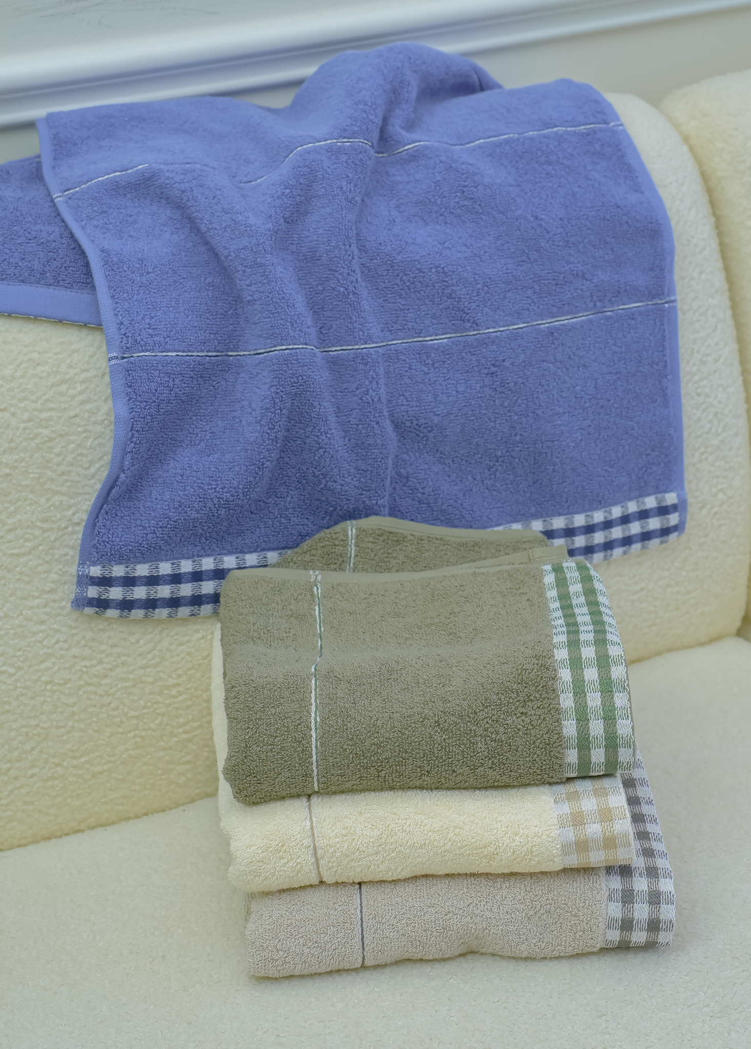Bộ khăn TG Line Check được thiết kế với họa tiết kẻ sọc tinh tế, mang phong cách hiện đại nhưng vẫn giữ được sự tối giản đặc trưng của các dòng khăn cao cấp.